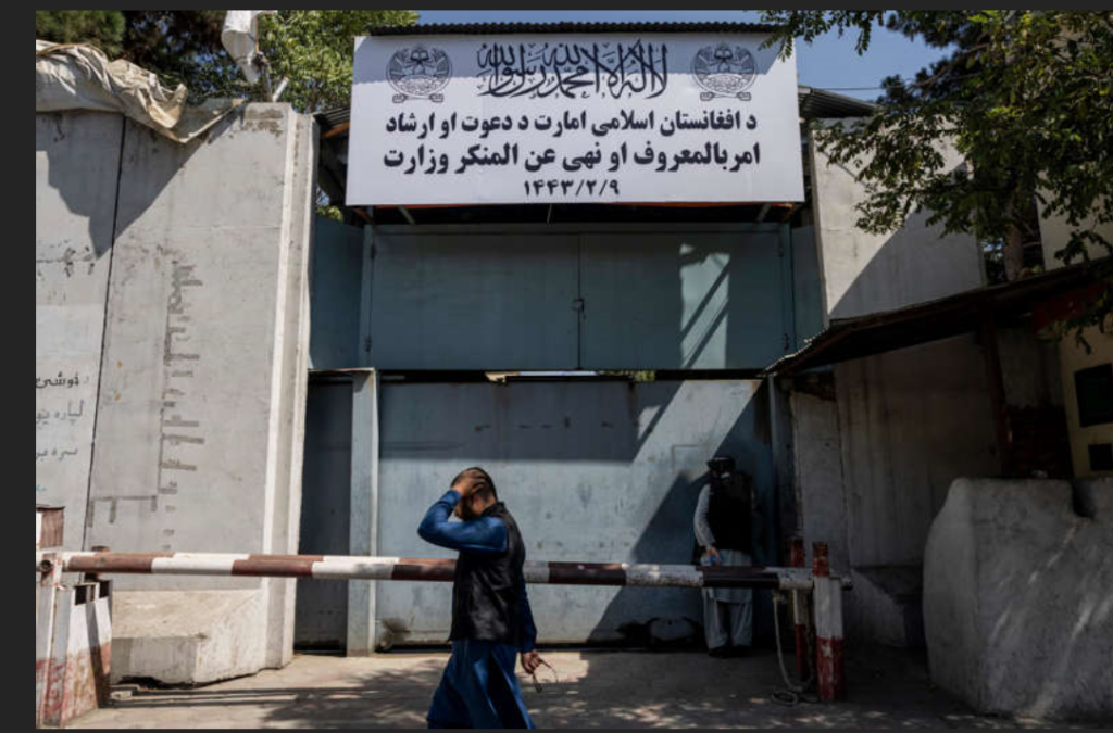 In Kabul, a new sign was up outside the women’s affairs ministry, announcing it was now the “Ministry for Preaching and Guidance and the Propagation of Virtue and the Prevention of Vice.”